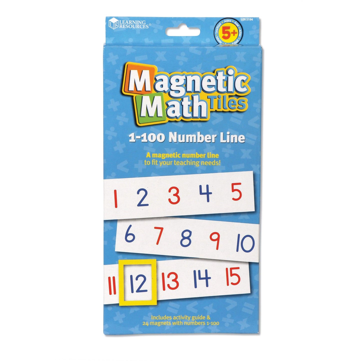 Demonstrate counting, operations and equations in a visually engaging way with this set of 24 magnets. Suitable for use on any magnetic surface, each magnet strip is printed with 5 numbers and measures 9 1/2"L x 2 1/4"H. Just line up the strips to create a single 1—100 number line. Odd numbers appear in red, even numbers in blue. Use the 4 frame magnets to highlight individual numbers on the line. Includes guide with ideas for 100th day of school activities, plus many other everyday uses throughout the school year.