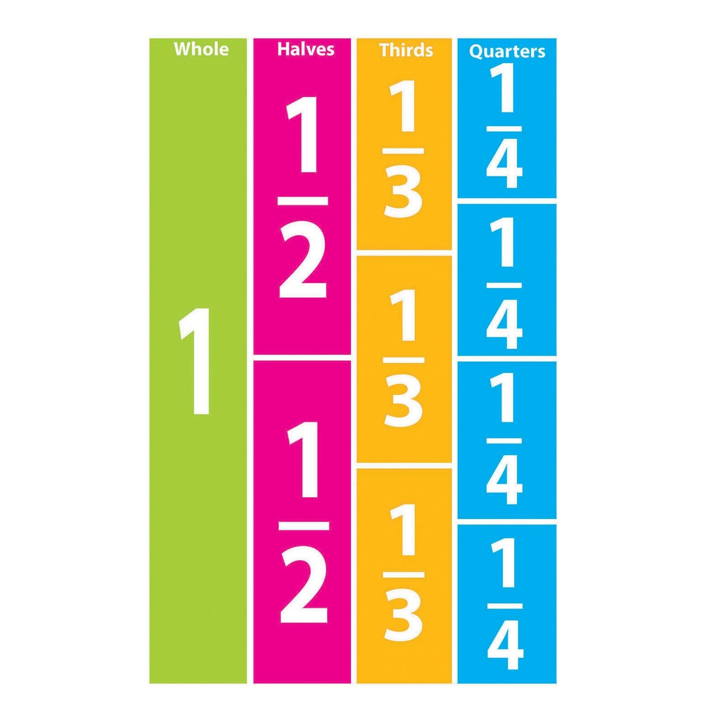 Die-cut magnetic fractions comes on 8.5" x 11" easy punch out sheet. Great for use in the classroom or at home! Great color scheme to help the eye pick out different pre-printed fractions, and great for learning and improving math skills. Write-on/Wipe-off surface allows use with dry erase markers or chalk pens! Each pack includes 51 pieces of pre-printed fractions. Sold as 5 packs for a total of 255 pieces.