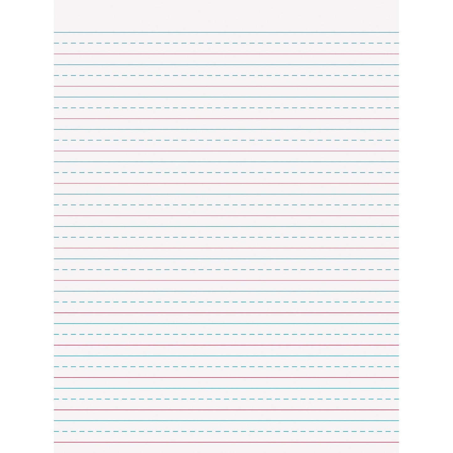iii : Bright tablet paper that's 0.5" ruled on both sides with a 0.25" blue dotted midline, red baseline and 0.25" skip space; sheets measure 8" x 10.5 ruled the short way