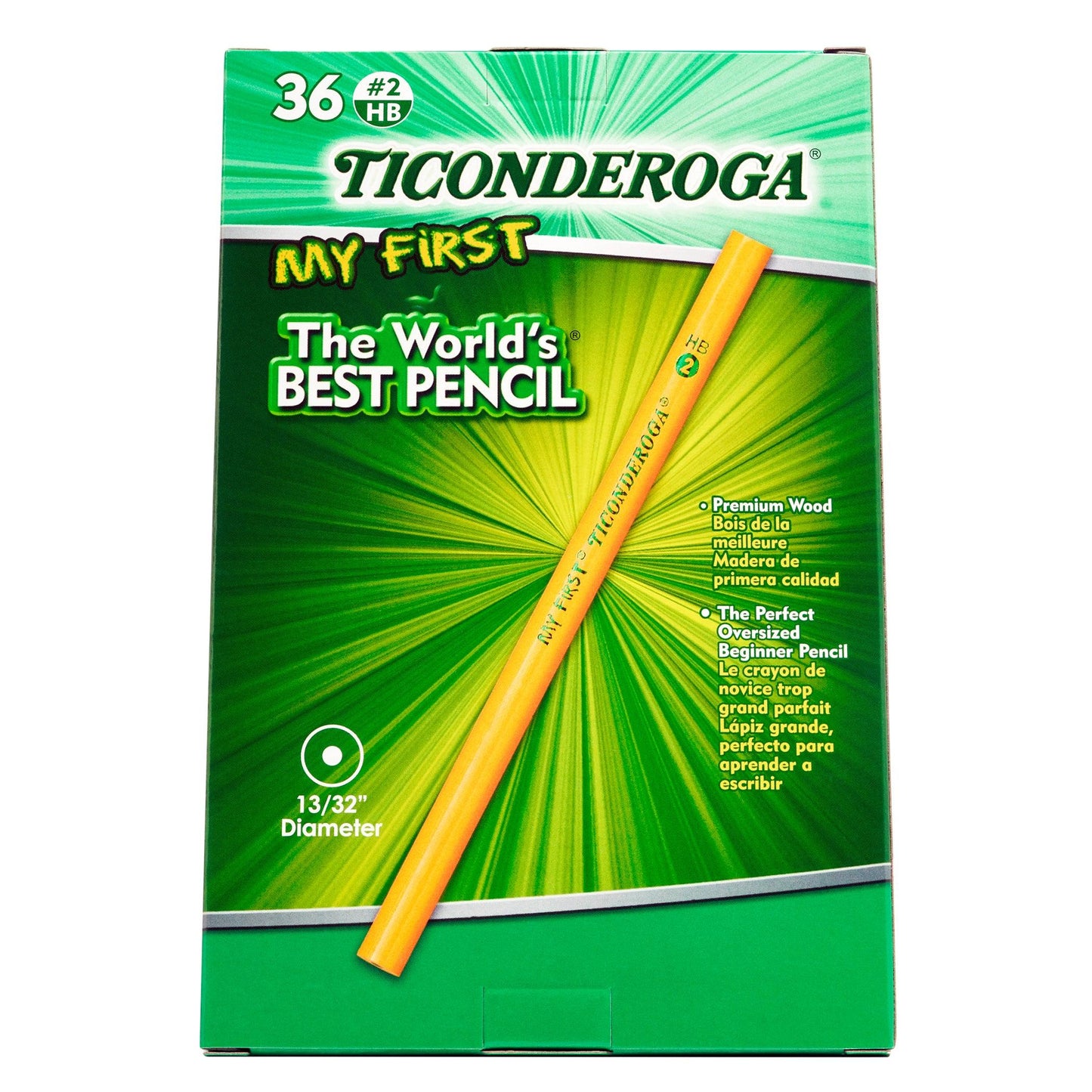Ticonderoga My First Pencils have a large size diameter (13/32") which is ideal for children in the early stages of their writing development. The exclusive #2 graphite formula provides extra smooth performance. These pencils are made with premium wood from responsibly managed forest. The pencils are PMA Certified and non-toxic. Each pack includes 36 pencils without erasers.