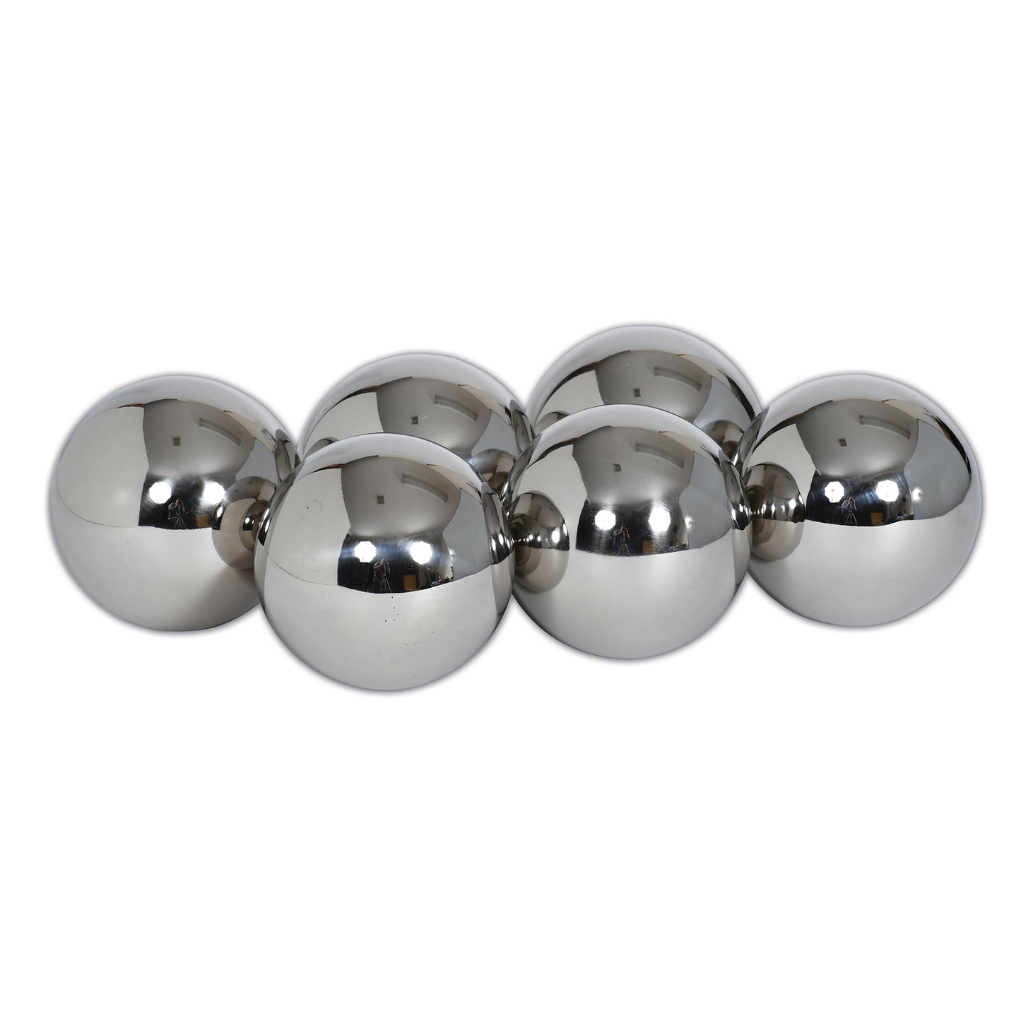 A set of 6 reflective mirror balls that look identical, but all have individual characteristics. Some wobble when rolled, or turn and won't roll in a straight line, some feel funny when twisted, spun or shaken and others make different shaker or rattle sounds. The shiny mirror surface provides a distorted fish-eye lens reflection which is fascinating for children to observe. They are robustly constructed from hard wearing stainless steel, are lightweight, smooth and tactile to handle and can be of particular appeal to children with special needs, or for those requiring inspiration in creative language. Size: 3.94" diameter.