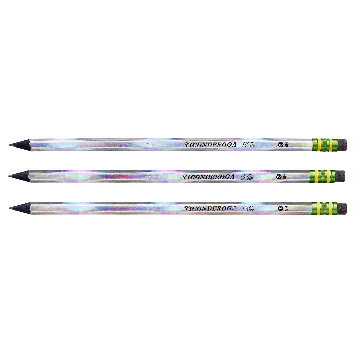 Ticonderoga® Noir Pencils lend a new look to our classic #2 pencil. Finished with an elegant holographic design that looks like crystal, Ticonderoga Noirs are made from premium stained black wood that will remain black when sharpened. These pencils are more than pretty. Our exclusive graphite core formula makes them great performers. High-quality, black, latex-free erasers result in smudge-free corrections. PMA certified non-toxic. Each pack includes 12 pencils. Sold as 3 packs for a total of 36 pencils.
