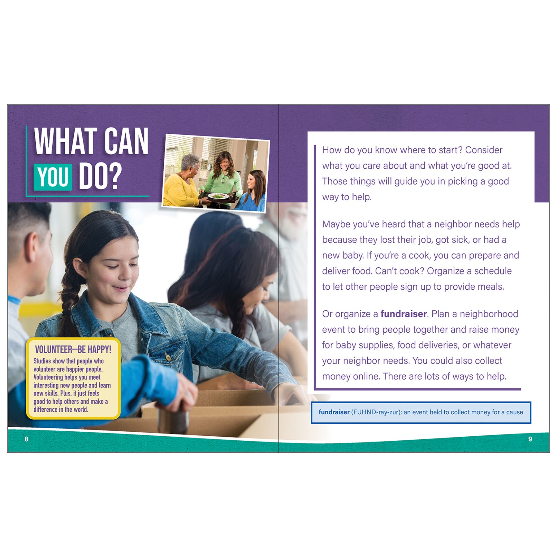 What are some of the best ways to volunteer and become involved in your local community? Learn tips on how to become an active community member through volunteering for different social causes in the children's book Organize and Volunteer. This kid's book takes students on a civic journey to teach them about the importance of volunteering and getting involved in their community. The nonfiction book features engaging text, a glossary, and after-reading questions to help enhance reading comprehension skills. Rourke proudly publishes respectful and relevant nonfiction and fiction titles that represent our diverse readers, and are designed to support reading on a level that has no limits!