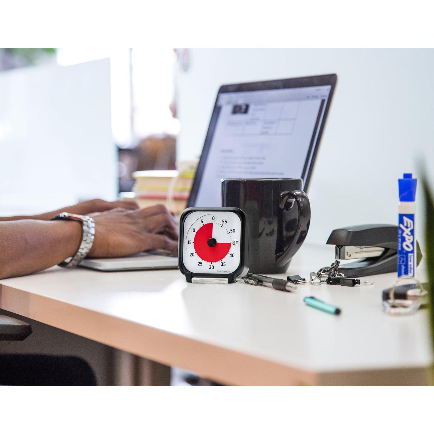 Visually count down the minutes using the Time Timer Original 3" Pocket. This patented visual timer displays time in a concrete way - the red disk disappears as time elapses, making time easily and quickly understood by all ages, grade levels, and abilities, with just a quick glance. Sized for individuals. It's simple to set any duration up to 60 minutes. Time counts down automatically. The Time Timer Original 3" includes a clear protective cover that flips over for a desktop stand and a soft carrying bag, creating a portable on-the-go time management solution. Time continues to countdown when closed. Timer has a built-in slot on top for PEC placement and includes a Dry Erase Card for activity management. No loud ticking and optional alert. Requires one AA battery (not included).