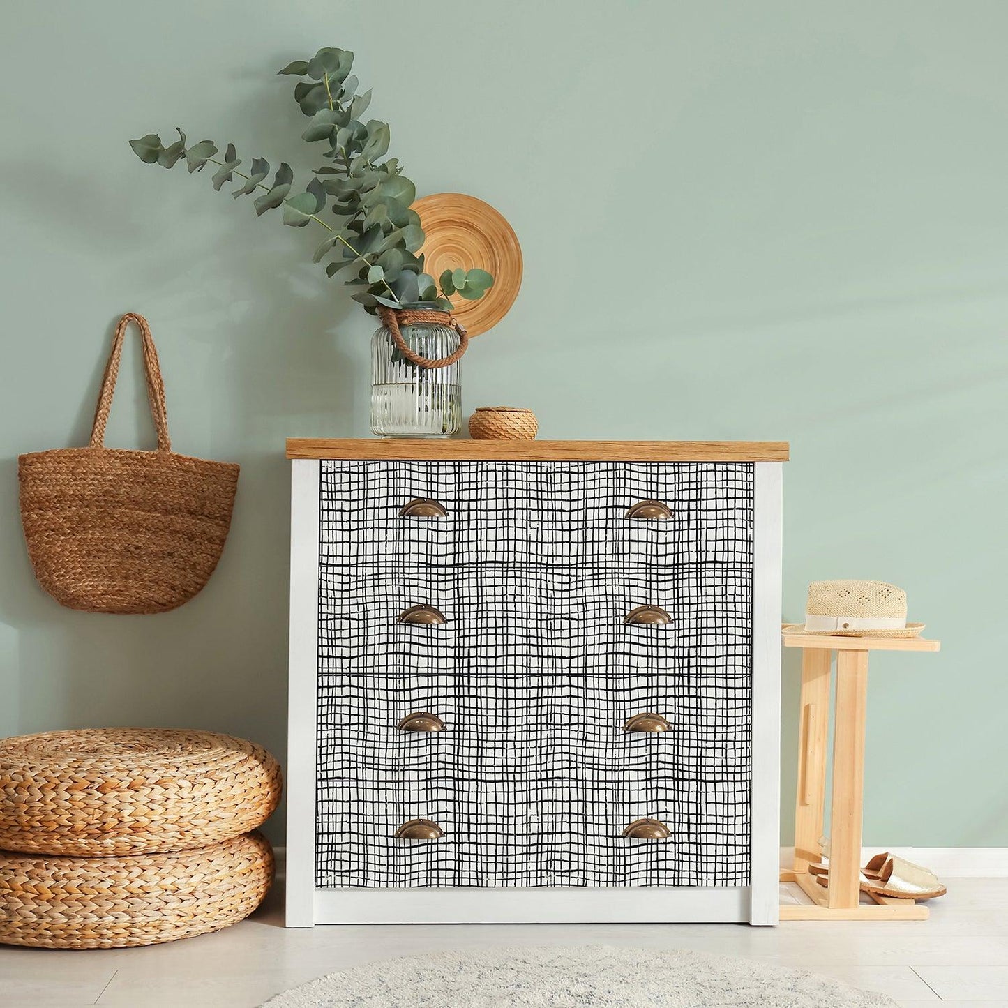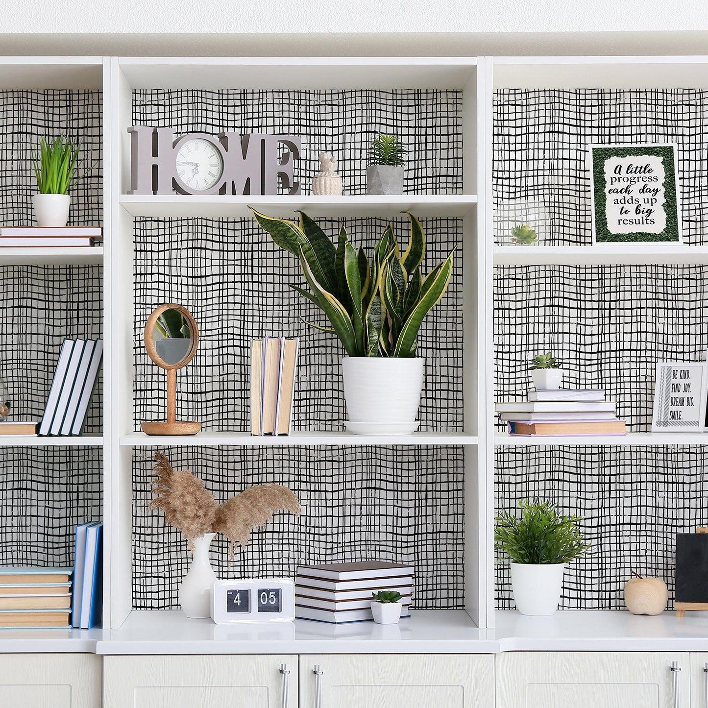 - Peel and Stick Decorative Paper Roll, 17-1/2" x 10 ft, Black Freestyle Grid