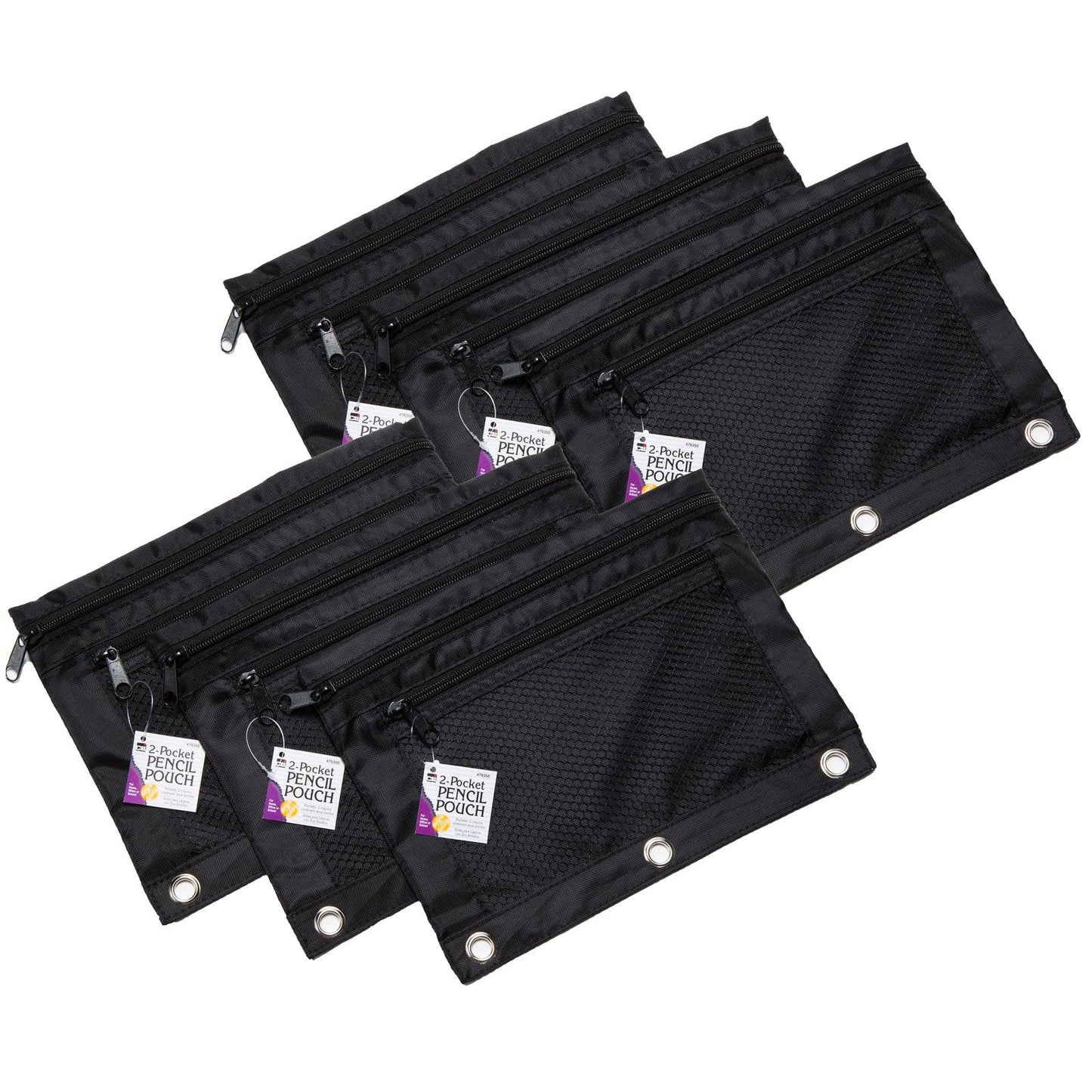 - Pencil Pouch, 2 Pocket with Mesh Front, Black, Pack of 6
