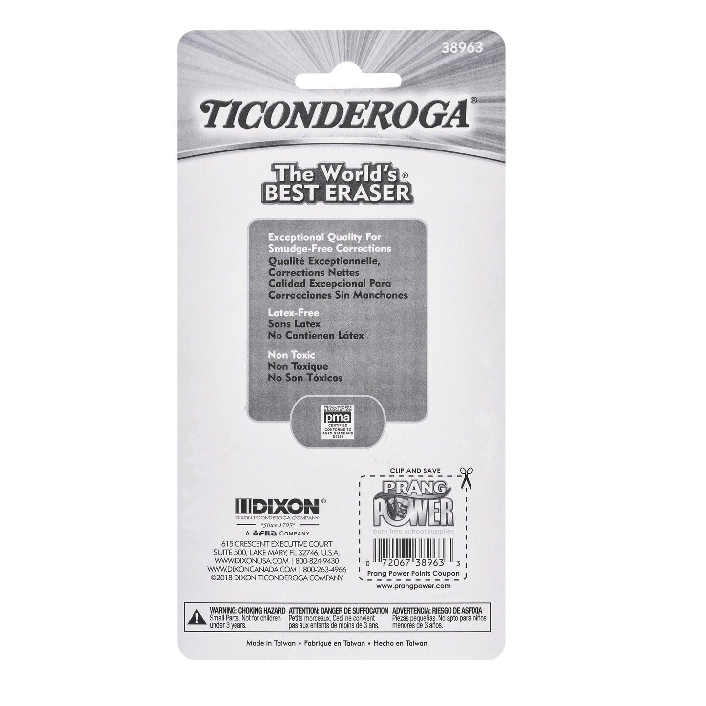 Ticonderoga® Pencil Shaped Erasers make correcting mistakes fun. The entire pencil shape is actually a high quality, latex-free eraser that cleanly removes black pencil marks, leaving you with a clear, smudge-free surface. PMA certified non-toxic Each pack includes 3 erasers. Sold as 6 packs for a total of 18 erasers.