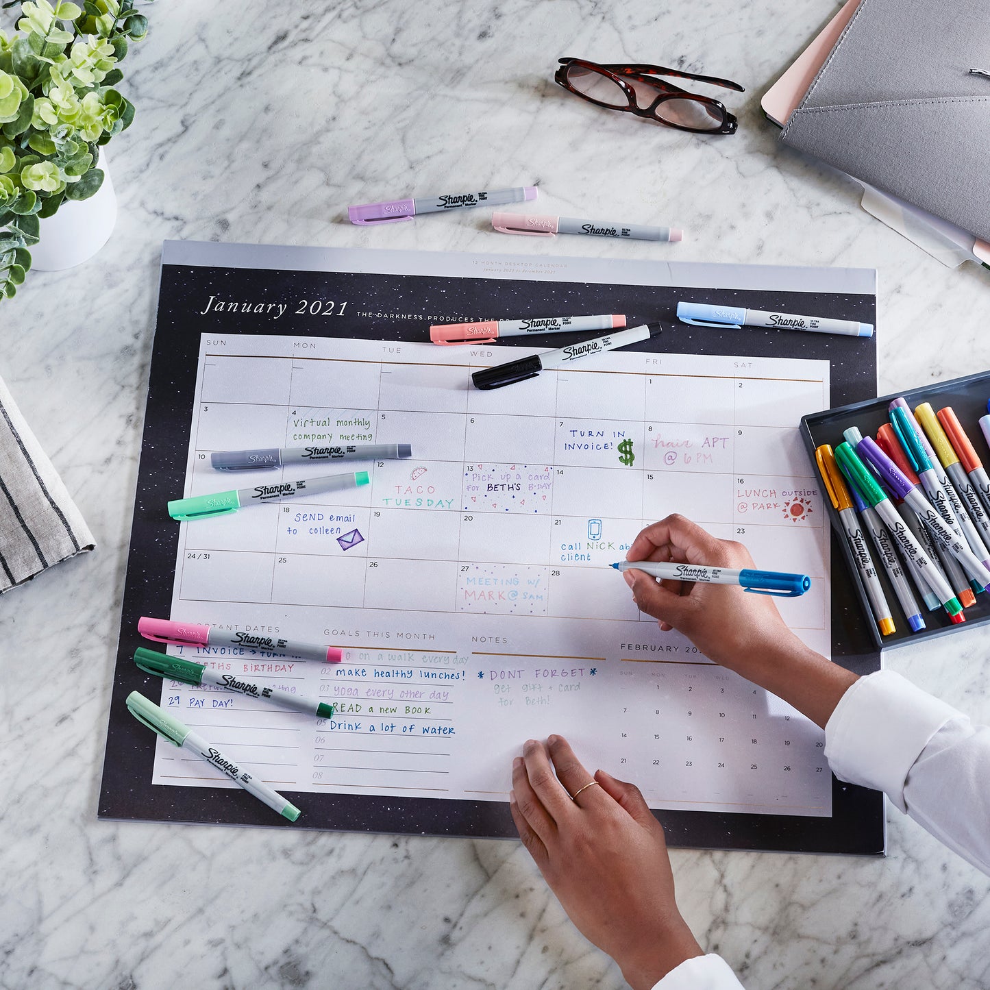 i : Sharpie permanent markers with ink that marks on paper, plastic, metal, and most other surfaces
