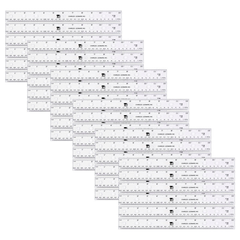 The Charles Leonard Plastic Ruler is a must-have tool for any student or professional. This pack of 36 durable plastic rulers features a double beveled edge with a convenient pencil groove, making it easy to draw straight lines and measure accurately. The raised calibrations show 1/16 inches on one edge and millimeters on the other, allowing for precise measurements in both standard and metric units. The holes on the ruler also allow for easy storage in ring binders, keeping your workspace organized and clutter-free. Made of clear plastic, this ruler allows for easy viewing through to the page, ensuring accurate measurements every time.
