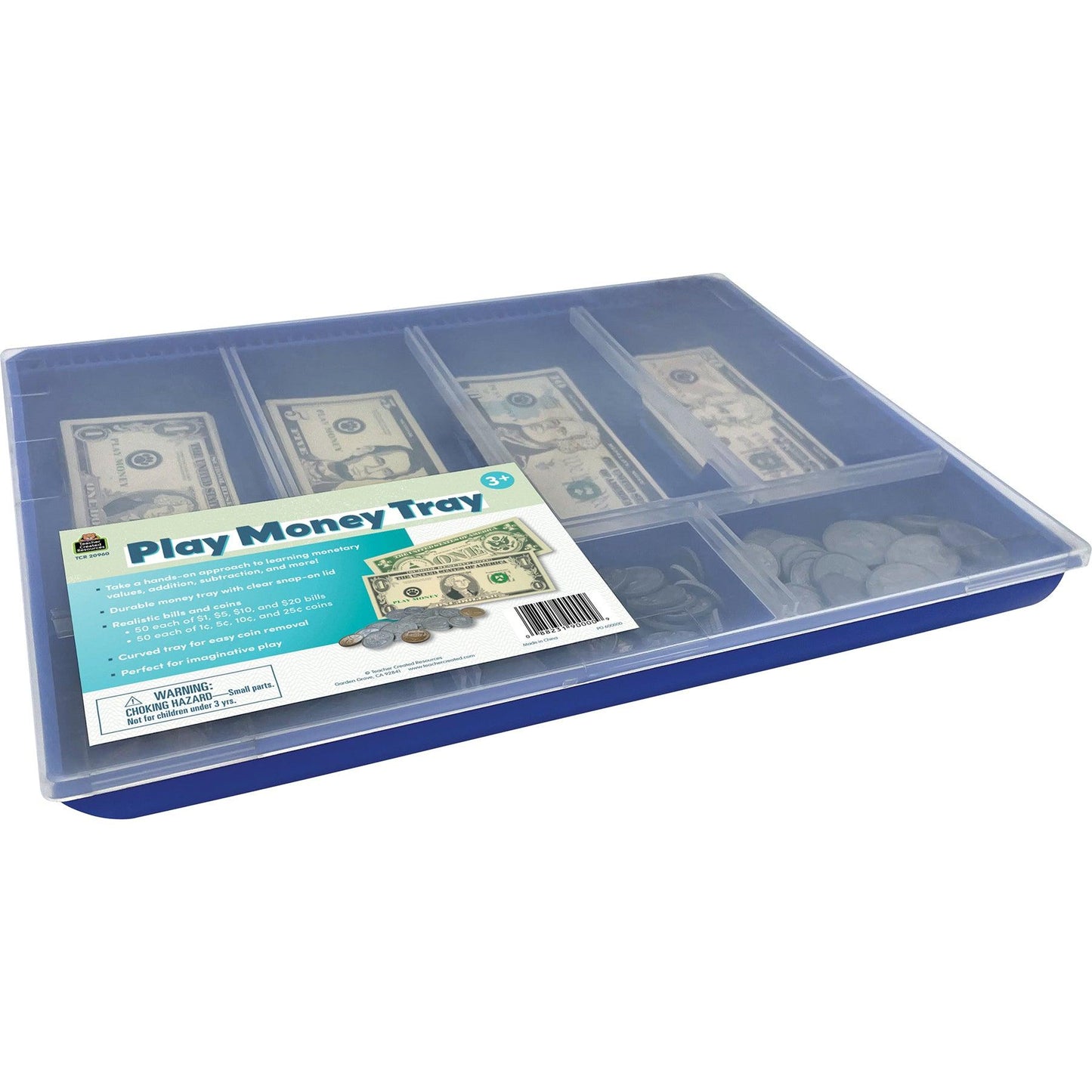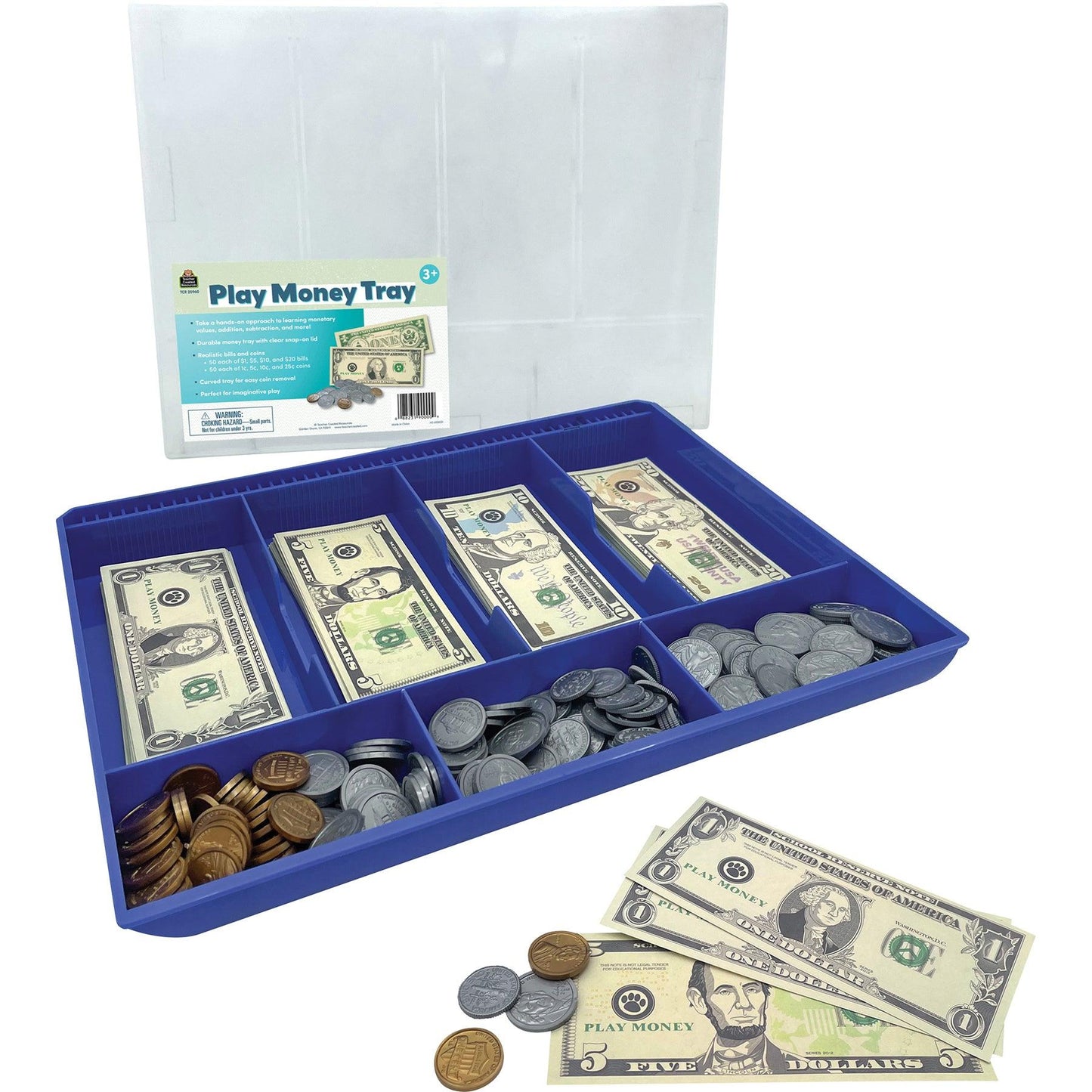Take a hands-on approach to learning monetary values, addition, subtraction, and more! The realistic bills and coins are perfect for imaginative play. The coin compartments are curved for easy coin removal and has a clear snap-on lid for easy storage. Set includes 50 each of $1, $5, $10, $20 bills and 50 each of 1¢, 5¢, 10¢, and 25¢ coins.