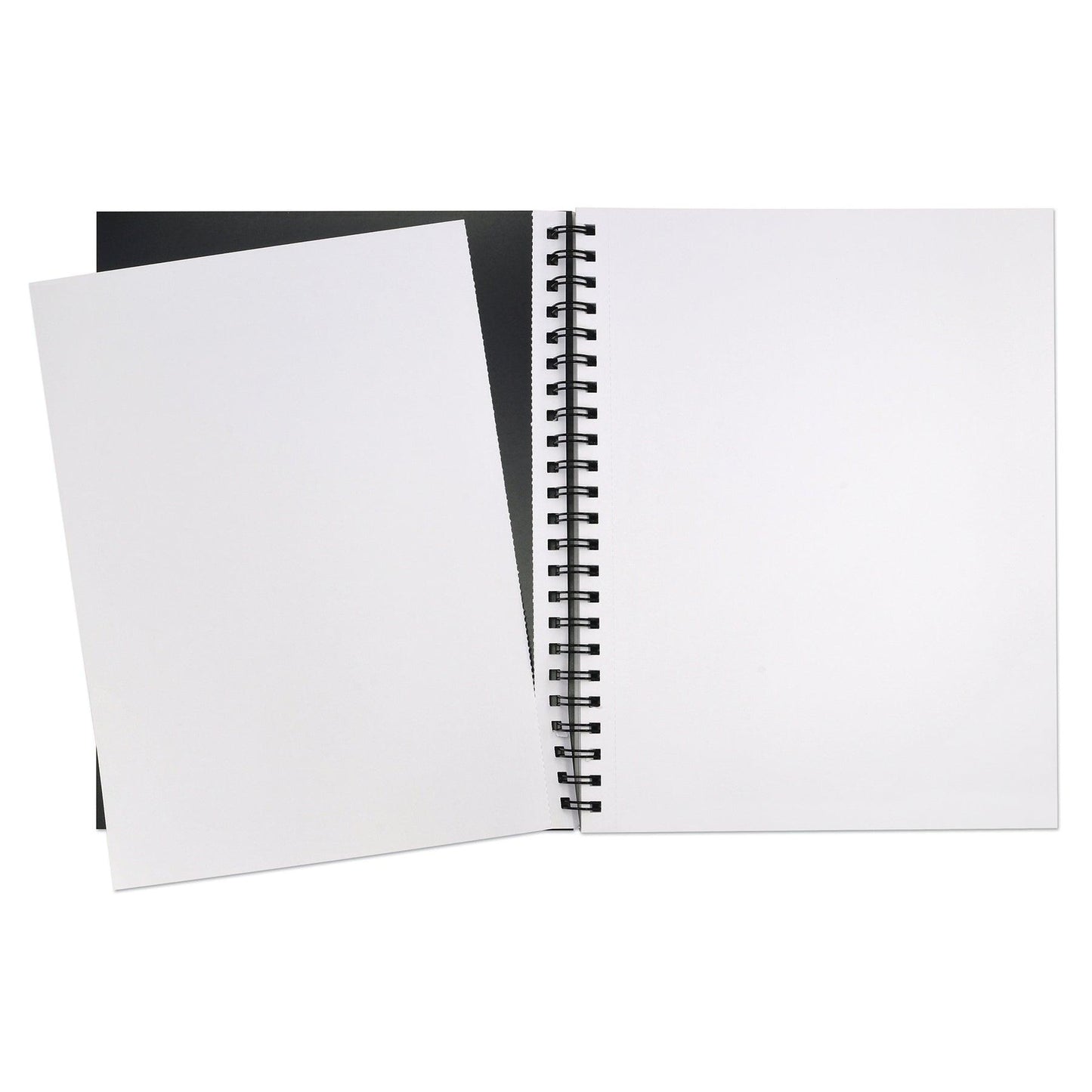 Premium sketch book with a durable black poly cover and back. Each book contains 75 sheets of heavyweight, acid-free drawing paper. The spiral binding lies flat for comfortable drawing and sketching. Ideal for sketching and drawing with dry media. Sheets are perforated for final art. Acid-free. Sold as a pack of 3 books.