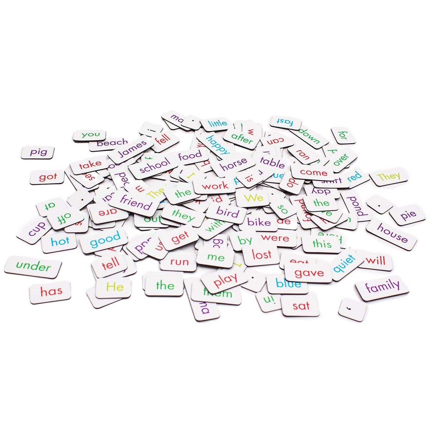 i : Contains 160 pieces including: 12 pronouns, 17 adjectives, 39 nouns, 44 verbs, 37 sight words and 11 punctuation marks.