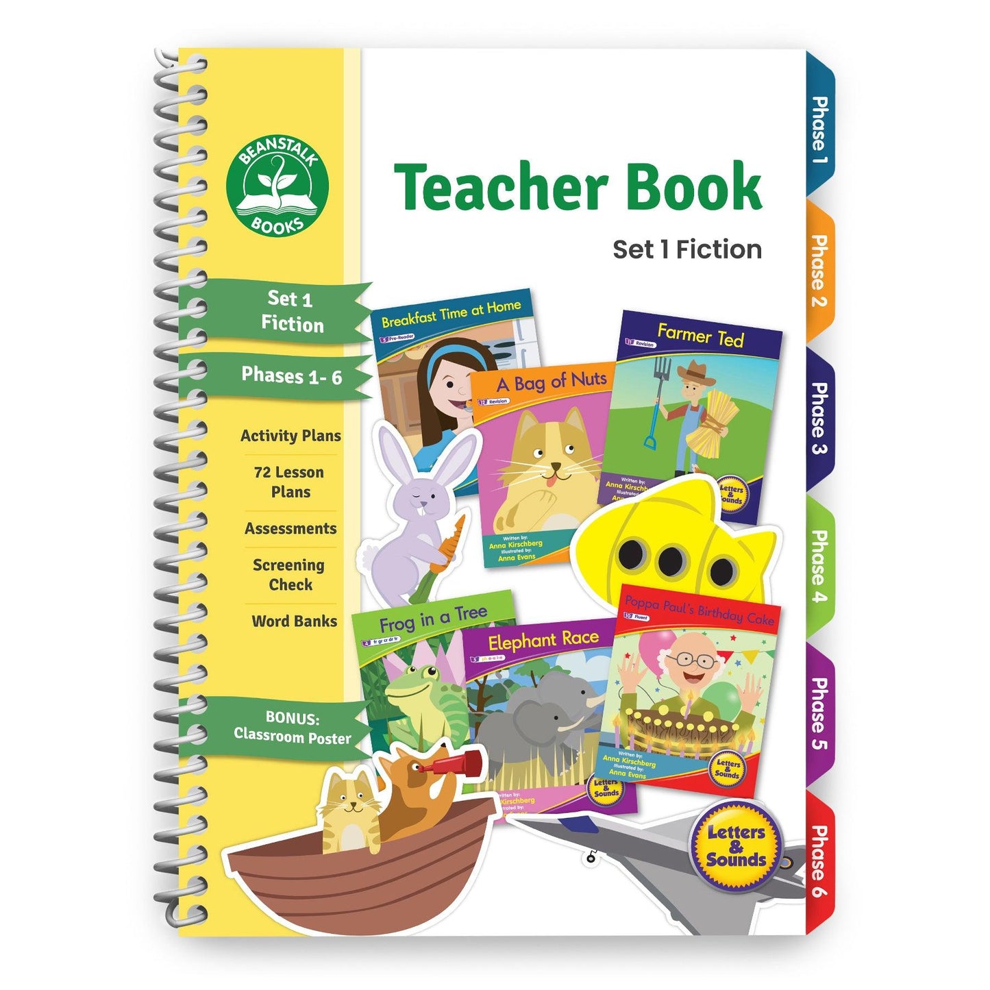 To support the Beanstalk Book range of decodable readers, we offer comprehensive Teacher Books. Teacher Book for Set 1 Fiction includes: overview of Letters & Sounds program; phonics scope and sequence, individual teacher lesson plans for each decodable reader in the set, photocopiable activity pages for each book, screening checks and assessment pages, and a high-frequency word bank.