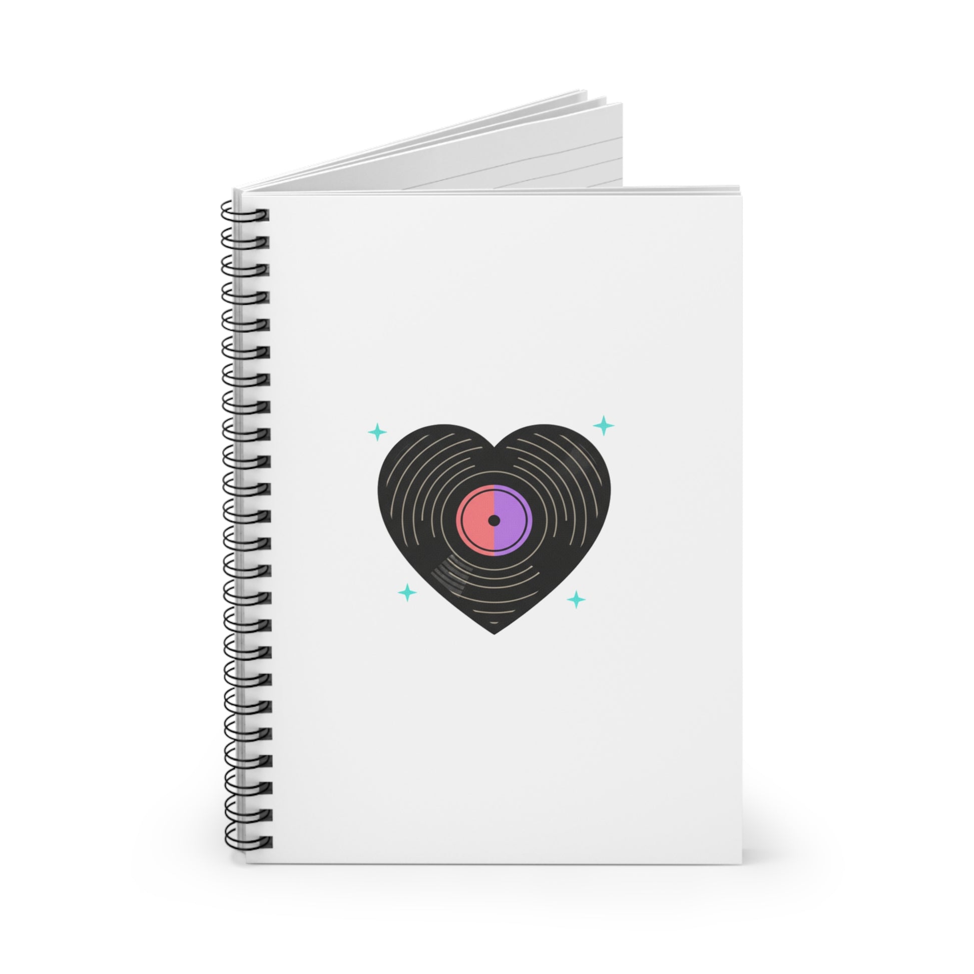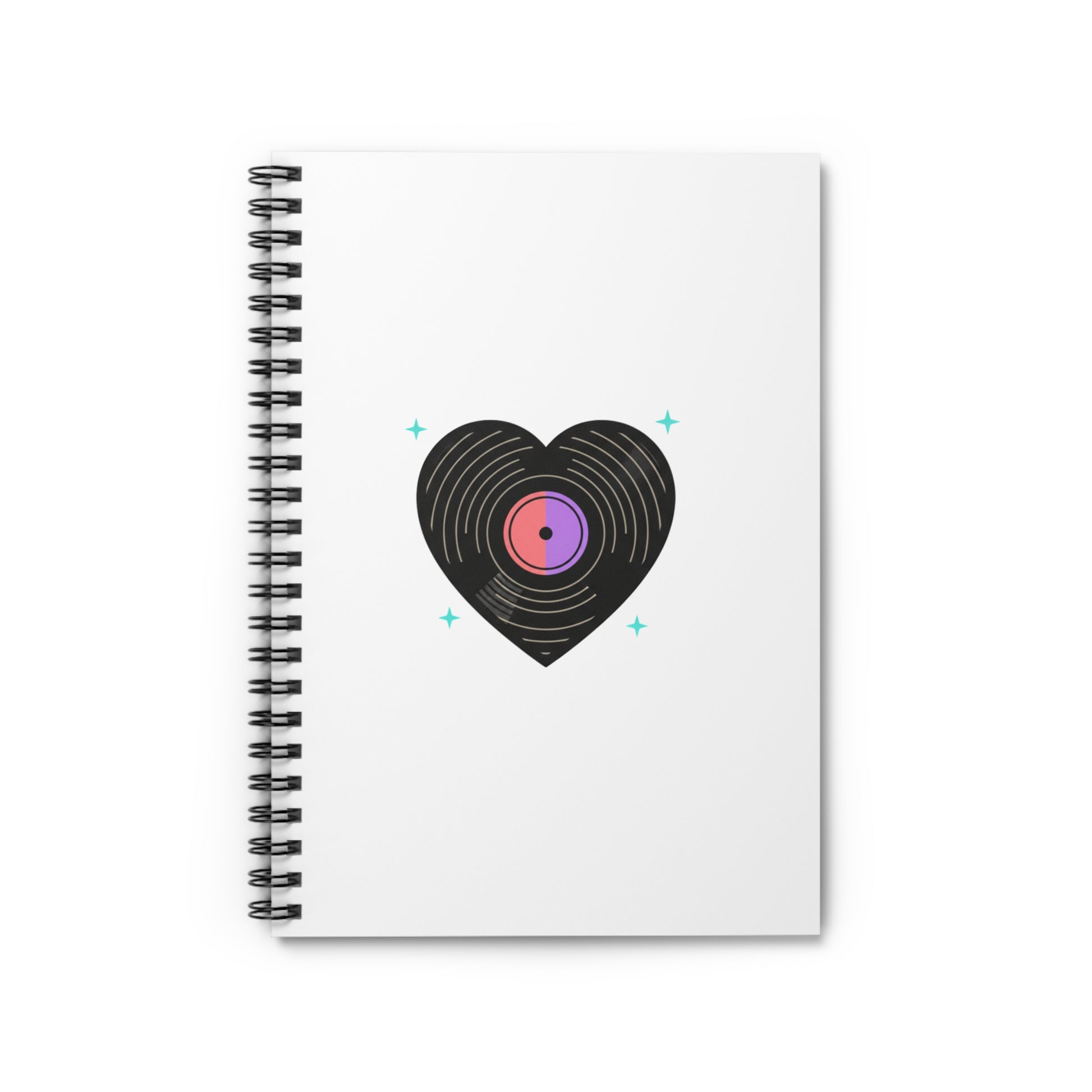 Search-friendly keywords: spiral journal notebook, vinyl record heart, music lover valentine, aesthetic notebook, Y2K stationery, back to school journal, Galentine gift, self-love journal.